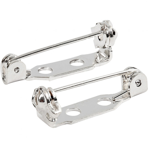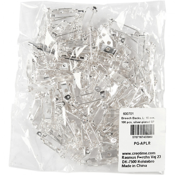 Brooch Backs, L: 15 mm, 100 pcs, silver-plated [HOB-600701]
