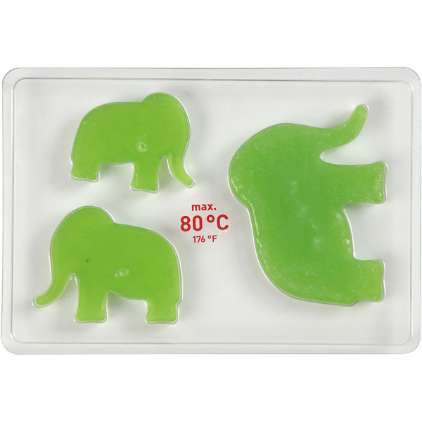 Transparent plastic mould with motives in 3 different sizes. Resistant to max. 80 °C.