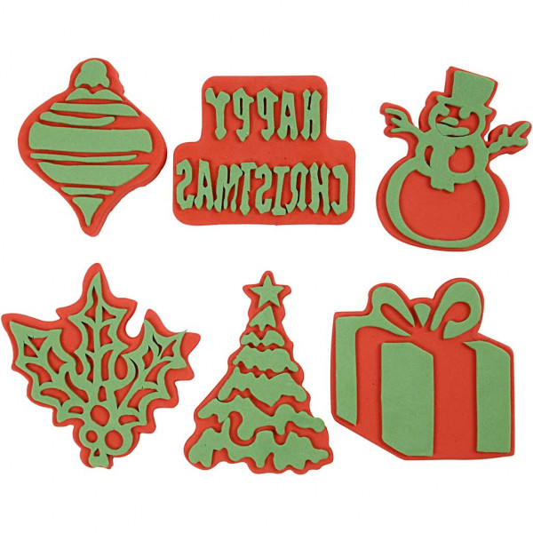Christmas Foam Stamps,, H: 6-8 cm, W: 6-8 cm, 6 pcs [HOB-95251]