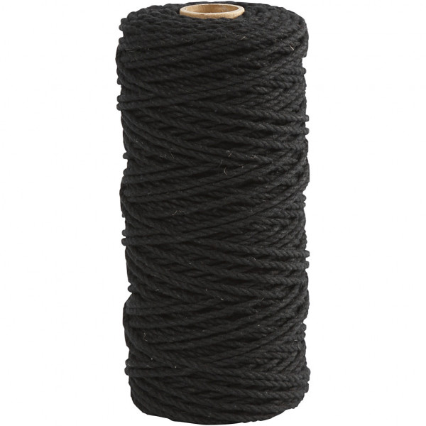 Cotton Twine, L: 100 m, thickness 2 mm, 225 g, black [HOB-41550]