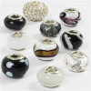 Glass Charm Beads, D: 13-15 mm, hole size 4.5-5 mm, 10 mixed, black/white harmony [HOB-68770]
