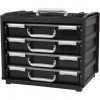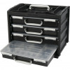Portable carrying box complete with 4 Raaco removable insert storage drawers made of polypropylene (PP) fitted with sliding lock and handle.