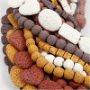 Assortment of coloured lava beads in trendy shapes with rustic and uneven surfaces.