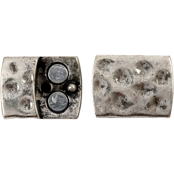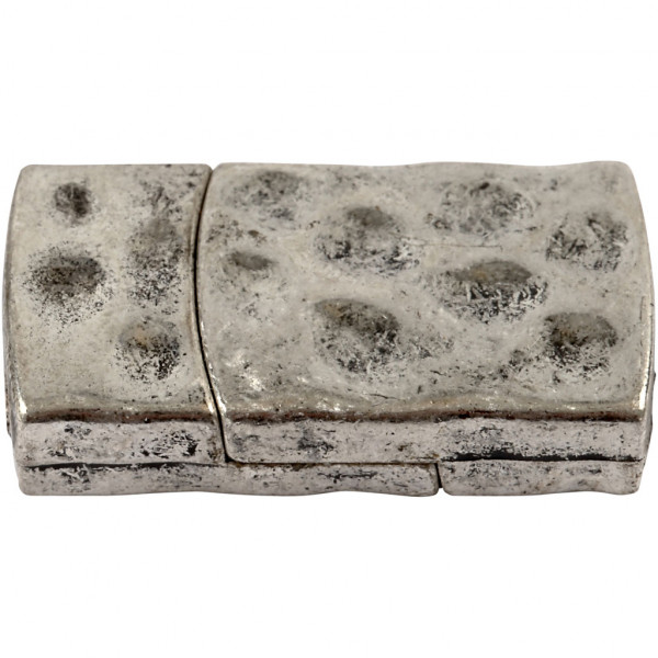 Flat, 2-piece magnetic clasp with a rustic surface.