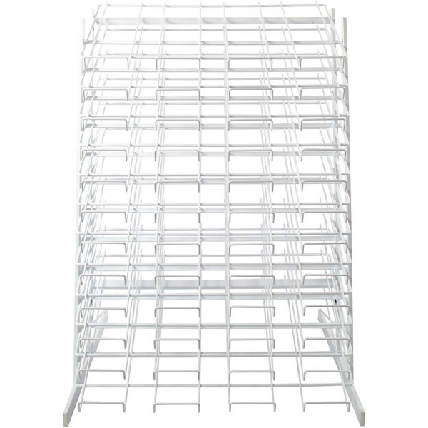 White painted metal storage for large sheets etc.