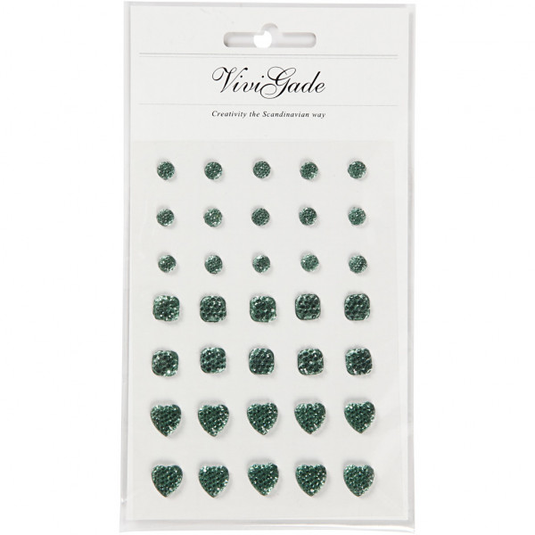 Rhinestones, size 6+8+10 mm, 35 pcs, green [HOB-24381]