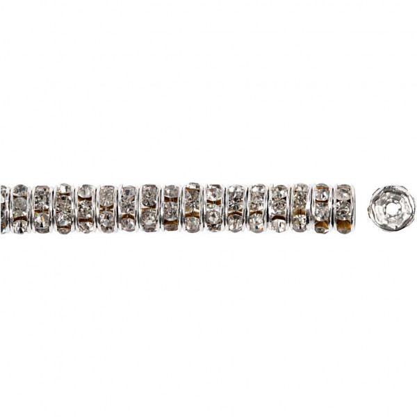 Rhinestone Rondelles, D: 6 mm, hole size 1.2 mm, 50 pcs, silver-plated [HOB-601651]