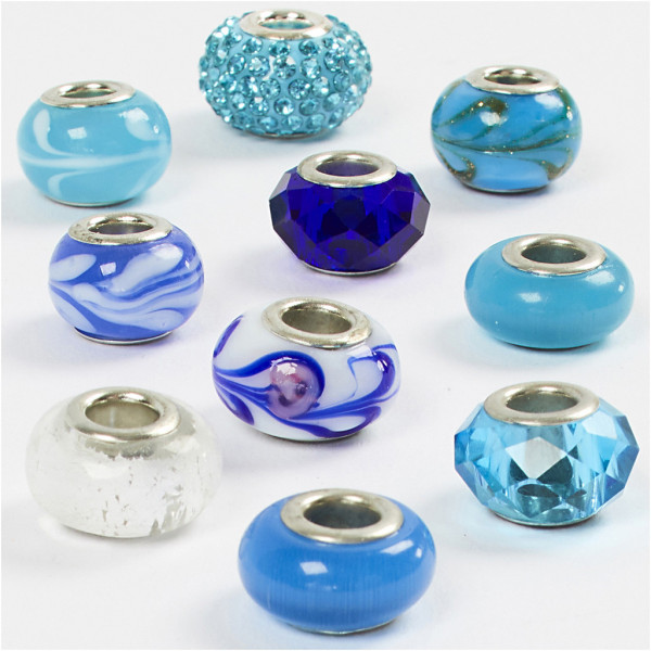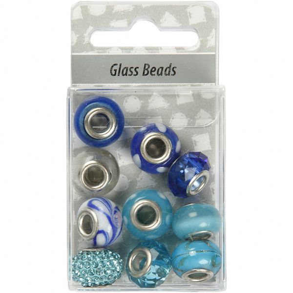 Glass Charm Beads, D: 13-15 mm, hole size 4.5-5 mm, 10 mixed, blue harmony [HOB-68772]