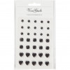 An assortment of self-adhesive rhinestones in a design from Vivi Gade with a raise front and a flat back on sheets in 3 designs (round, square, heart).