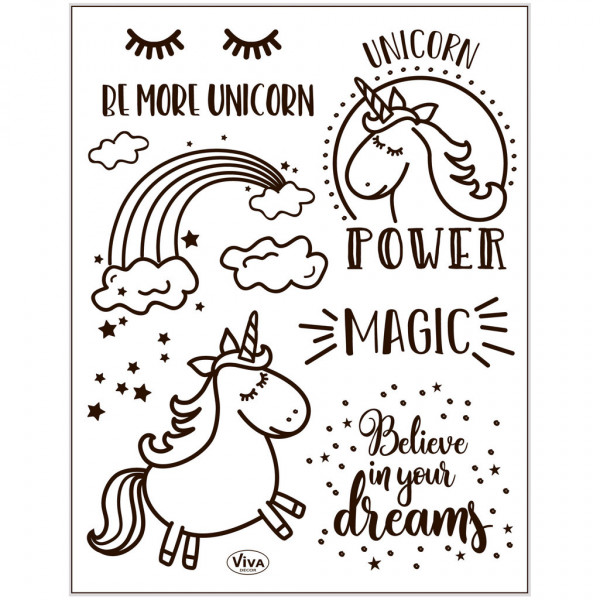 Sheets with different motives in transparent adhesive raised silicone. Mounted on an acrylic block (item no. 24010 and 24009) and used as a stamp.
