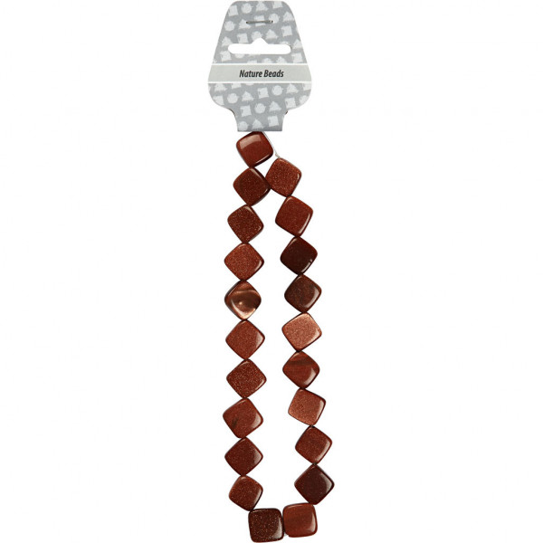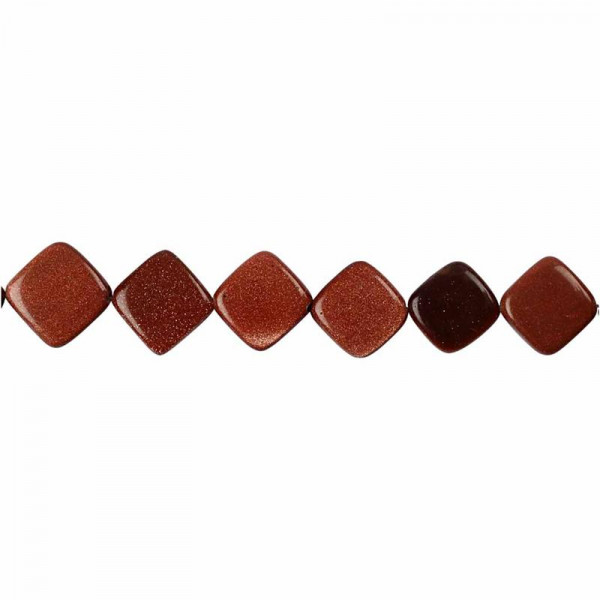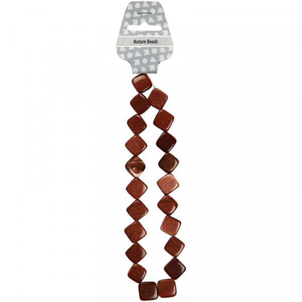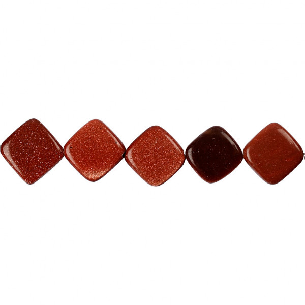 Flat square stone beads with gold glitter effect and diagonally drilled hole.